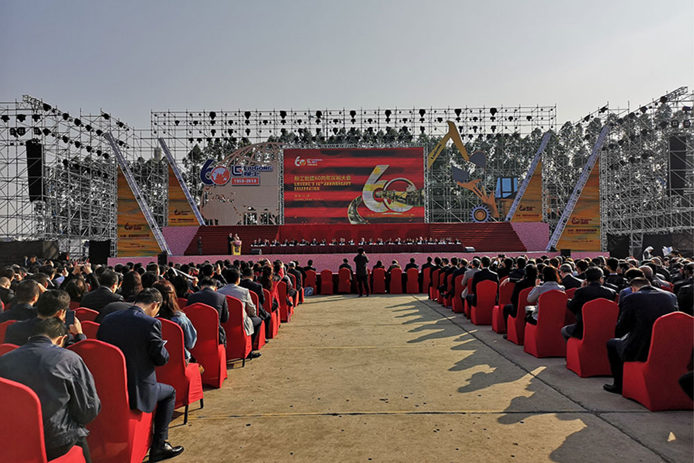 2018年11月26日,柳州,廣西,今天,柳工創建60周年慶祝大會在柳工國際工業園隆重舉行,現場有關懷和支持柳工發展的廣西壯族自治區和柳州市各級領導,來自8個國家的駐華使節,中國科學院和工程院院士,還有為柳工發展壯大做出卓越貢獻的老領導、老前輩,與柳工攜手并進、互利共贏的海內外客戶、經銷商、供應商、股東、合作伙伴和相關方等各界人士齊聚一堂,共同慶祝柳工60周年華誕。