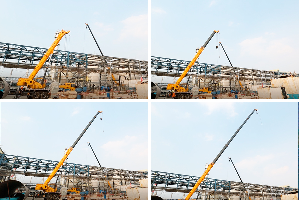 初入施工工地,宏大的場面深深震撼到測評人員,腦子里唯一的念頭是:場面如此恢弘的工程,對起重機用戶的資質要求應該相當的高,由此可見,柳工沉淀在起重機核心客戶圈的影響力。值得說明的一點是,由于石化工地管控嚴格,本次測評的不同項目是由多款在該工地施工的柳工TC250C5設備合力完成,也側面反映柳工TC250C5整體性能的穩定性。