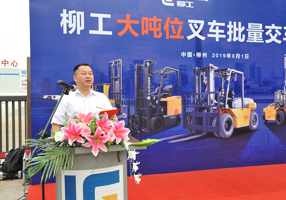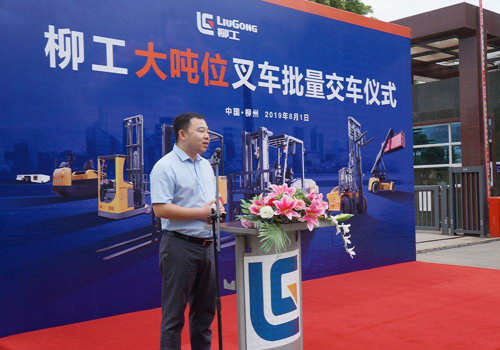 儀式上,批量的柳工大噸位叉車順利通過客戶驗收并成功交付。肖總在儀式上致辭,他表示柳工大噸位叉車傳承了柳工在大型工程機械設備研發制造的突出優勢,在產品技術、質量標準及保證能力方面處于行業先進水平。