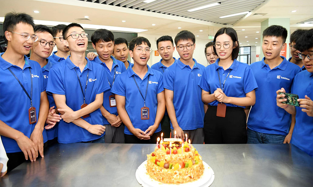 挖掘機表演結(jié)束,正當(dāng)搶凳子、踩紙板等游戲讓新員工們玩得開心之時,現(xiàn)場突然想起了生日歌,為7月出生的30多名新員工過集體生日,面對驚喜,小壽星們百感交集,感受著大家庭的溫暖。