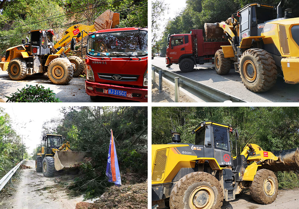 從8月11日到13日,柳工裝載機870H,850H,855N,842H,分別趕赴黃巖西部山區和昌化受災地區努力奮戰,為打通災區生命通道時刻不停。