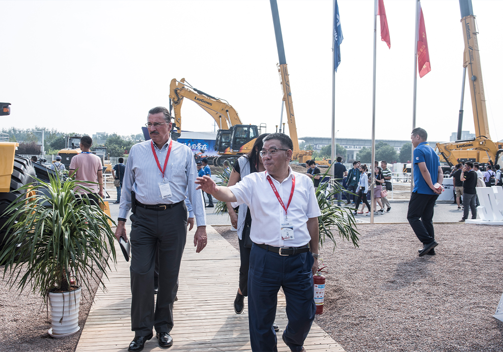 曾光安董事長向AEM總裁介紹柳工展臺