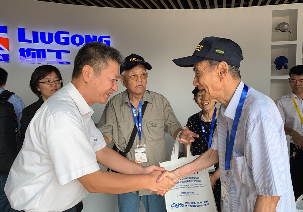 廣西柳工機械股份有限公司總裁黃海波在柳工展臺接待了來訪的20位中國機械部老領(lǐng)導(dǎo),重點介紹了柳工新能源設(shè)備和5G遠(yuǎn)程遙控設(shè)備。