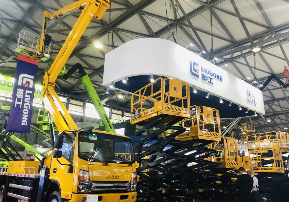 安徽柳工此次攜12臺全新D系列高空作業設備前往參展,并現場舉行了“新無界·境自高”為主題的D系列高空作業設備發布會。