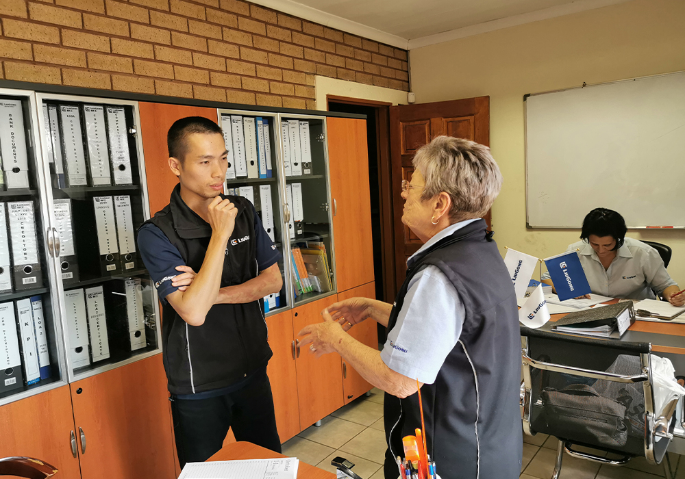 潘立定于2016年入職柳工,在藍華春的推薦之下于2017年加入了南非團隊。到子公司歷練,一直是他的夢想,妻子對于潘立定的這個夢想也是十分支持。去年6月份,潘立定的妻子因病需要做手術,考慮到剛來南非子公司不久,有很多工作需要開展,兩人經過再三商量后,潘立定還是堅守在了南非的工作崗位。