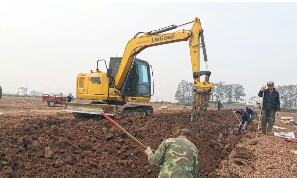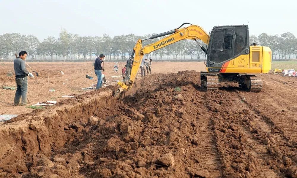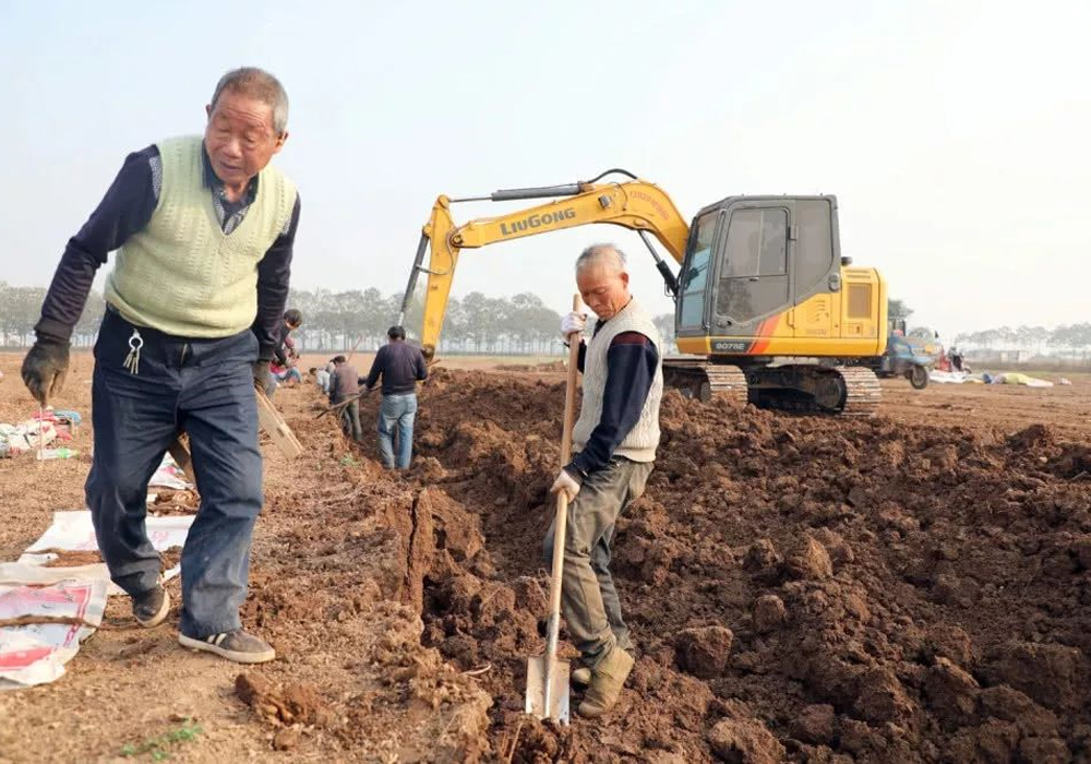 使用挖掘機(jī)幫忙挖山藥,這既節(jié)約了時(shí)間,又保證了山藥的完整性。