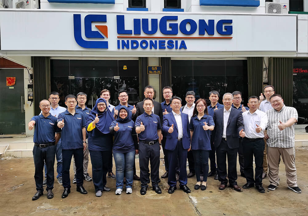柳工支持人員、子公司團(tuán)隊(duì)在印尼公司門(mén)前合影