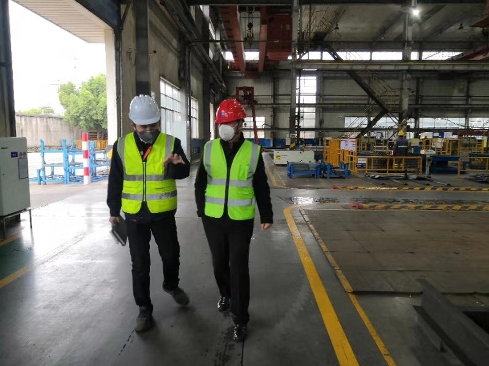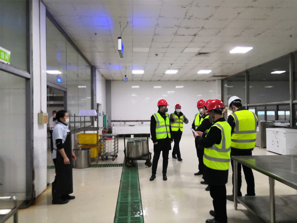 在職工食堂,黃海波與食堂工作者深入交流,詳細了解該食堂消毒工作、工作人員在崗、疫情防控培訓等情況。黃海波隨后來到公司門衛進行檢查,向工作人員詢問安全保障方案,如對外來人員必須要測量體溫,佩戴口罩才能進廠等。公司門衛處已配備好體溫檢測設備和設立臨時隔開場所,一旦發現發熱員工,立即引導到臨時隔離區,上報公司HSE專業部門再進行醫學管理措施。