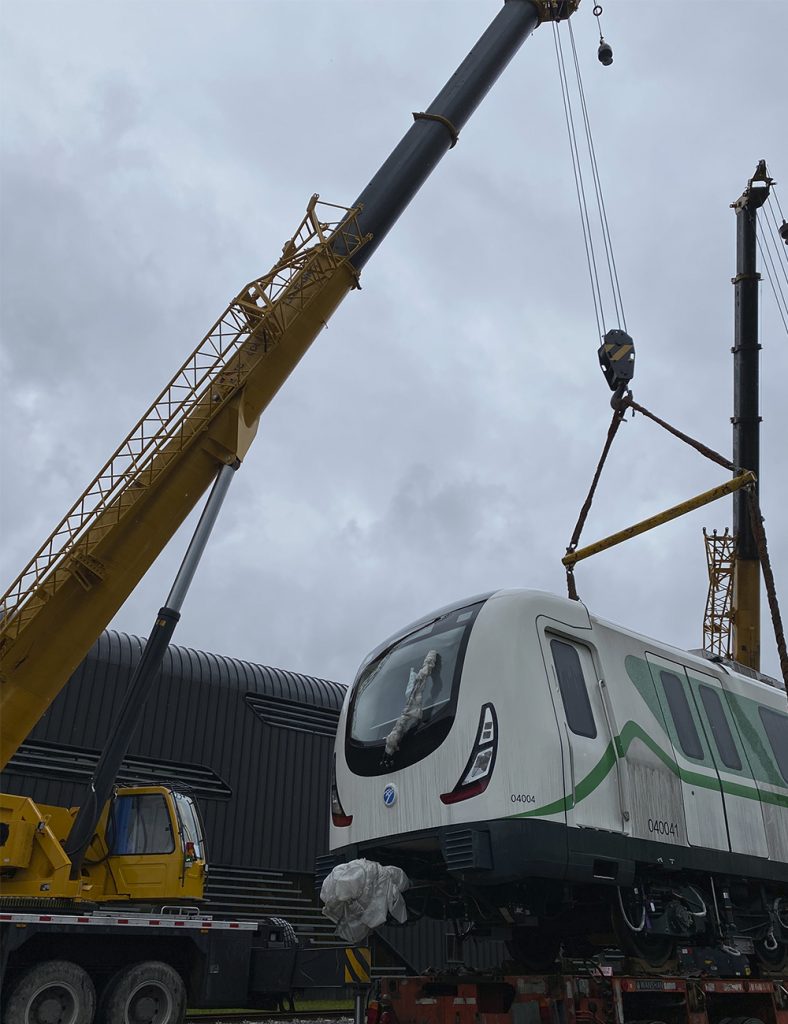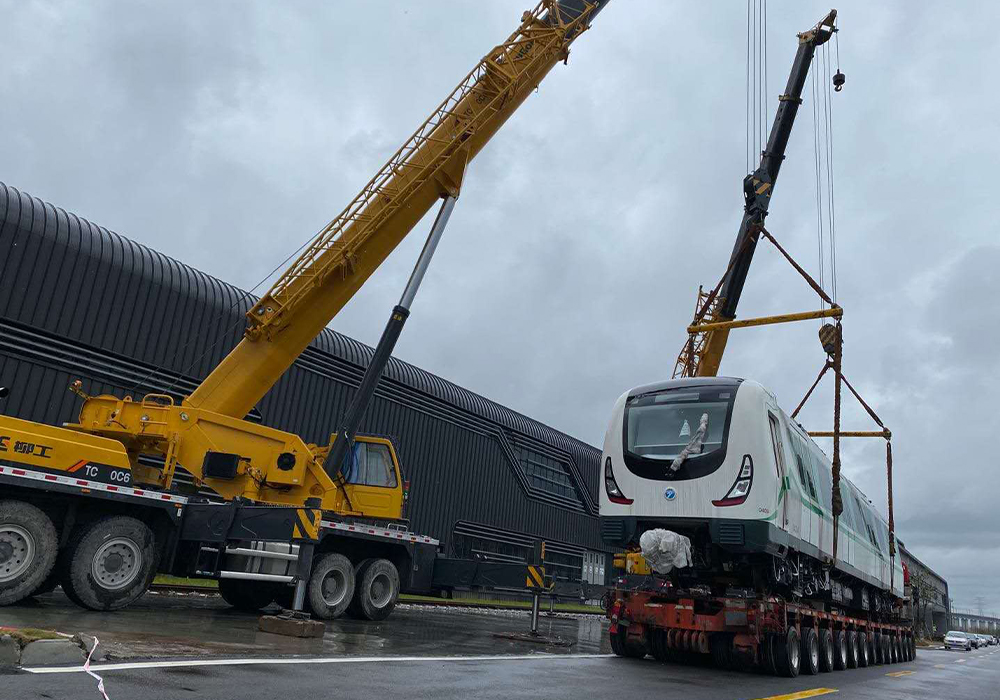 由中國中車生產的地鐵車頭正安靜的停放在中鐵一局的院內,如何把這個重達40多噸的大家伙安穩放上拖車,再送到寧波地鐵四號線,成了當務之急。車頭造價昂貴,高達2000萬元,加上車身比例、重量、大風等因素限制,此次吊裝任務除了對設備的起重性能有要求外,對起重機的穩定性、微動性以及安全性等要求極高。幾經周折下,施工方最終找到了陳老板和他的得力干將——TC800C6。