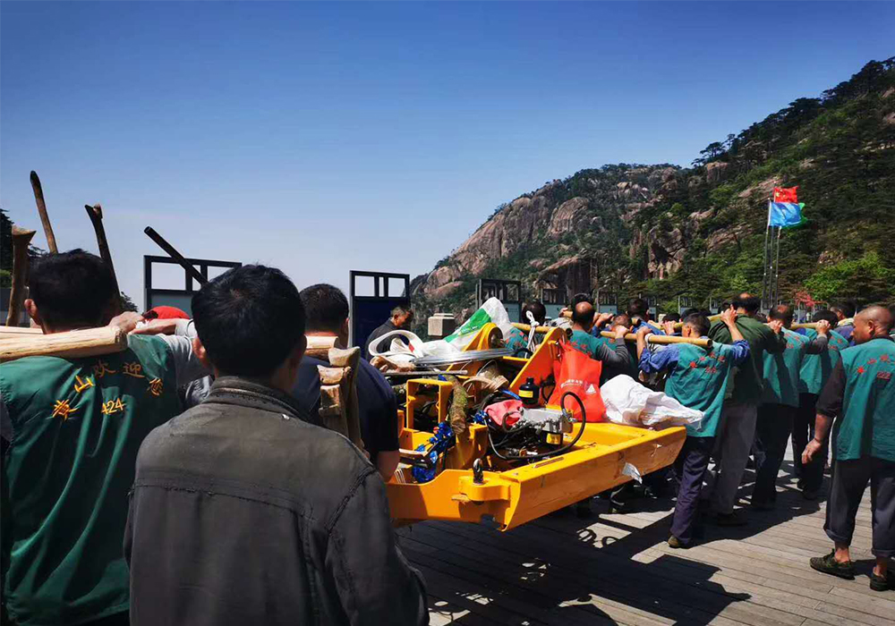 僅僅不到15天的時間,一群柳工人高標準、嚴要求地完成了這樣一件看似不可能的任務。——將一臺7.5噸重的挖掘機,分解后由太平索道運上去,再由黃山的挑夫們抬到海拔約1700米的高峰,然后在沒有任何起重、塔吊工具、氣源可用的情況下,再通過人工一點點組裝起來!事情要從半個月前說起…