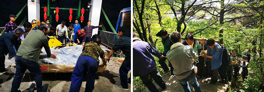 5月10日,拆裝完并打包好的全部散裝件按時運輸到了黃山腳下;