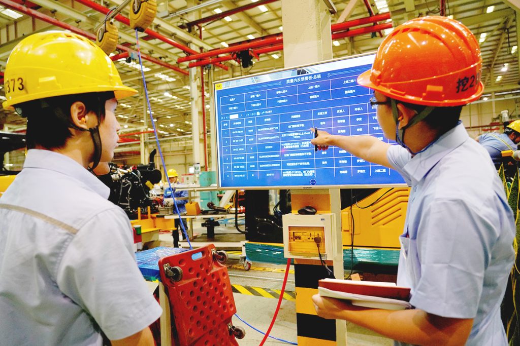 在挖掘機公司總裝廠裝配車間,每隔幾米就有一個實時看板,時間周期精確到秒,無論是生產、物料、設備還是質量等方面的數據都能在上面查看,高效、準確的數據為不同層面的管理層進行決策提供了有效的信息支持,實現從管結果到管過程的轉變。