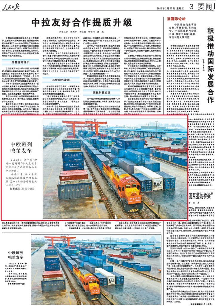 2月23日,《人民日?qǐng)?bào)》要聞版刊發(fā)圖片新聞,關(guān)注2022年柳工海外訂單增長(zhǎng)情況。
