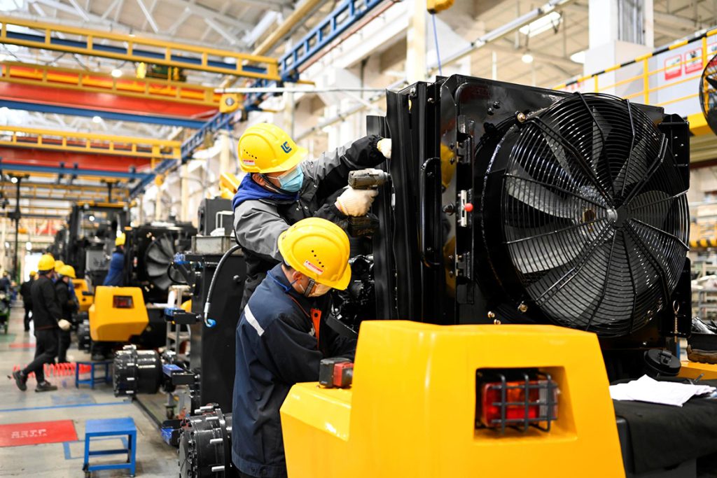 在柳工裝載機(jī)、挖掘機(jī)生產(chǎn)一線,機(jī)器轟鳴,熱火朝天,工人們?yōu)闈M足市場(chǎng)訂單需求大干快上,海外產(chǎn)品產(chǎn)銷兩旺,持續(xù)保持良好態(tài)勢(shì)。