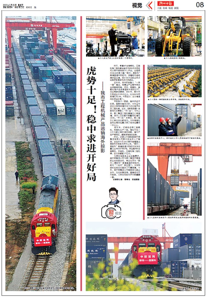 《柳州日?qǐng)?bào)》整版聚焦柳工產(chǎn)品遠(yuǎn)銷海外掠影。今年以來,柳工海外訂單增長(zhǎng)顯著,其中1月份海外銷量同比增長(zhǎng)103%。“開門紅”的背后,柳工海外訂單也發(fā)生了新變化,高端機(jī)型的出海發(fā)運(yùn)量占到了總發(fā)運(yùn)量的一半。