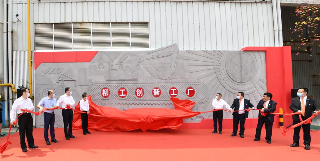隨著現(xiàn)場領(lǐng)導(dǎo)拉下帷幕,柳工創(chuàng)新工廠在這里誕生。