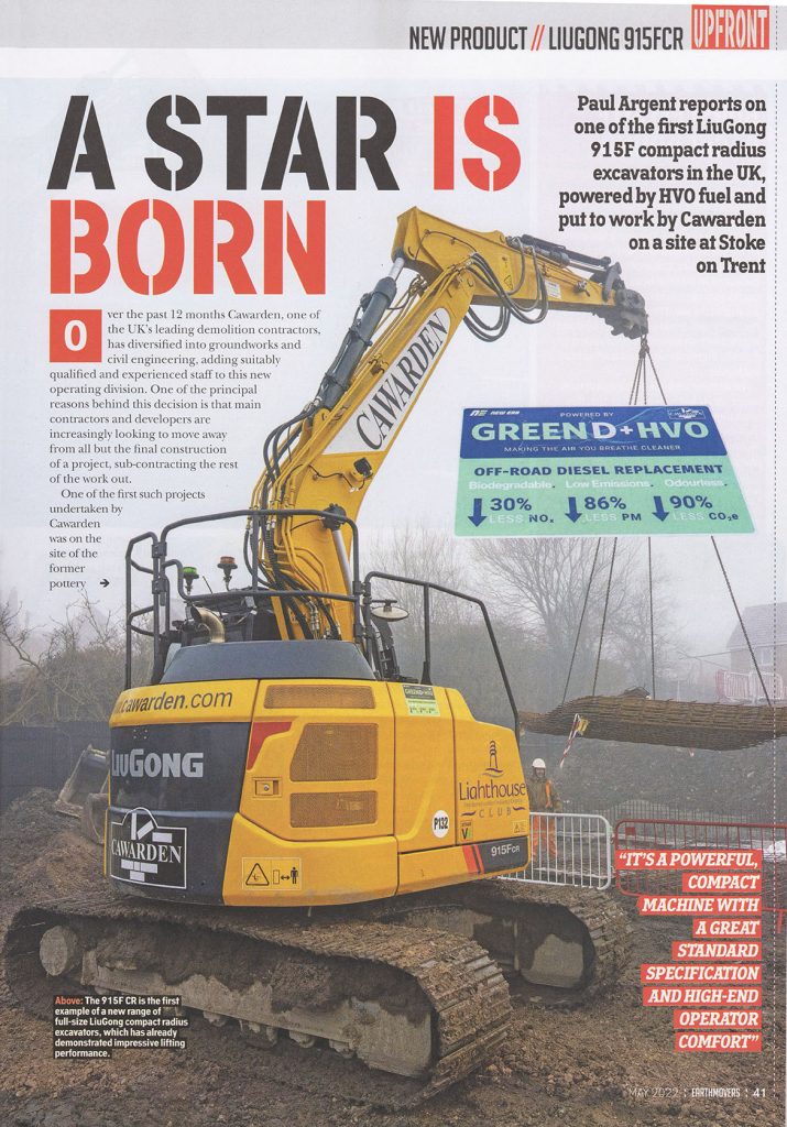 “一顆行業之星的誕生”。——《EARTHMOVERS》雜志在2022年5月刊中這樣評價柳工915FCR挖掘機。