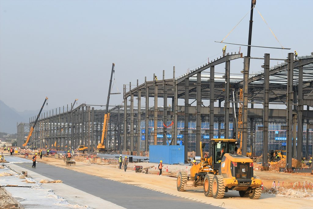 在柳工國際智能工業園施工現場,假期不停工,晝夜奮戰,處處一片繁忙景象,柳工挖掘機智慧工廠目前已完成鋼結構工程屋面封頂,中源液壓件智慧工廠也在加速建設。