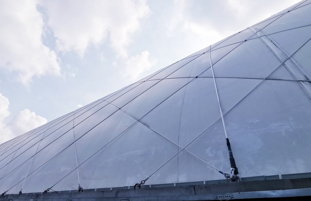 氣膜結(jié)構(gòu)建筑是一種使用特殊建筑膜材做外殼,通過氣壓把建筑主體支撐起來,再依靠外部拉索約束的一種建筑結(jié)構(gòu)系統(tǒng),目前已廣泛應(yīng)用于各類體育場館和倉庫等建筑。