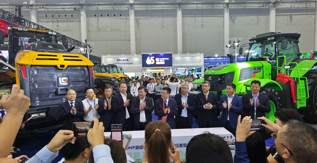 柳工此次發布的新品分別為LT3504混合動力拖拉機和LT3604靜液壓重載拖拉機。這兩款設備在充分融合工程機械成熟技術的基礎上,由柳工自主創新完成傳動、結構、液壓、電控等關鍵零部件及核心技術的開發和研制,擁有完全自主知識產權,適用于重載極限工況,可滿足高端客戶需求。此外,柳工還展示出了LT2004拖拉機、LT2404拖拉機、820TE電動裝載機和9017FE電動挖掘機等多款明星農機產品,現場吸引了眾多客商參觀咨詢。