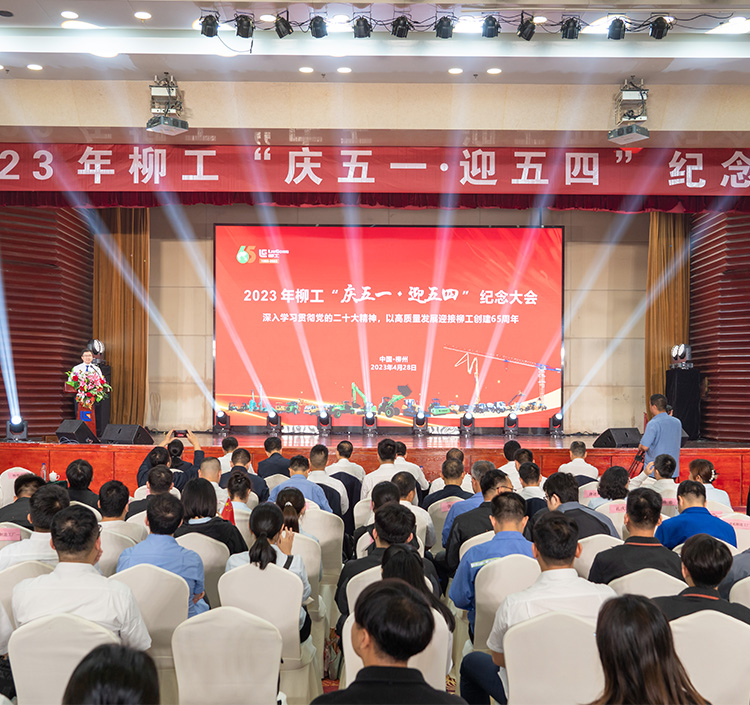 4月28日,柳工“慶五一·迎五四”柳工創建65周年紀念大會在柳工大廈二樓報告廳隆重舉行。