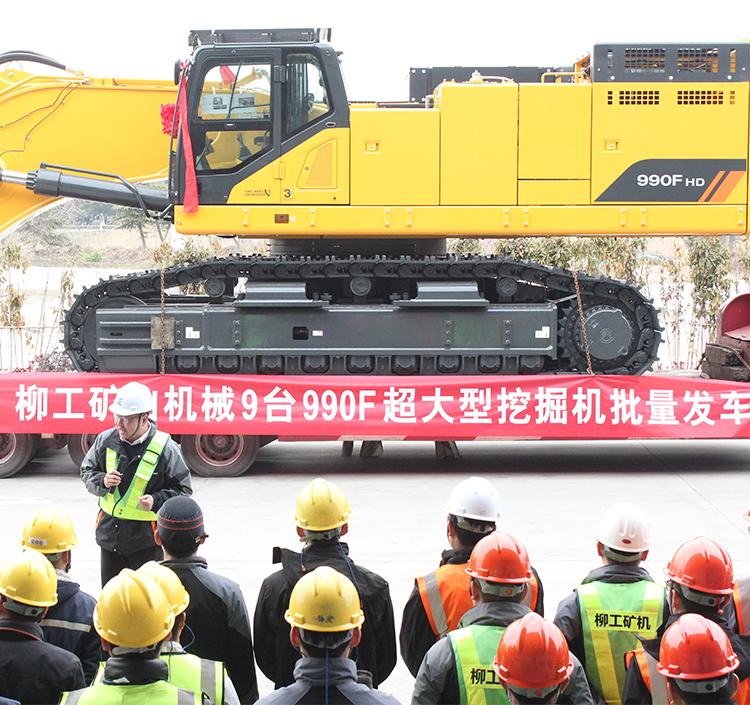 2月22日,990F超大型挖掘機批量發車儀式在柳工東部基地舉行,刷新了柳工超大型挖掘機單筆交易量新高。