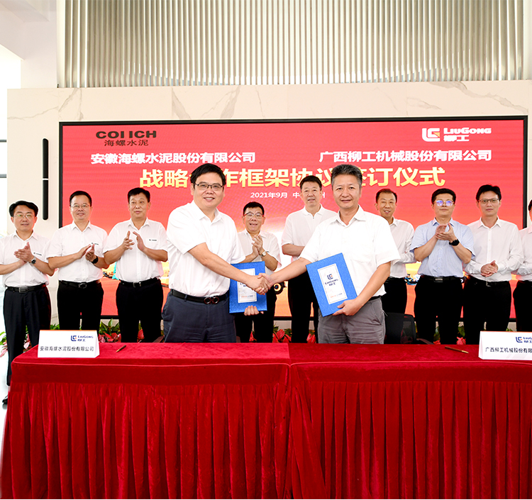 9月9日,柳工與安徽海螺水泥股份有限公司簽署了戰略合作框架協議。安徽海螺集團有限責任公司黨委書記、董事長,海螺水泥董事長王誠,柳工有限黨委書記、董事長曾光安出席座談并見證簽約。