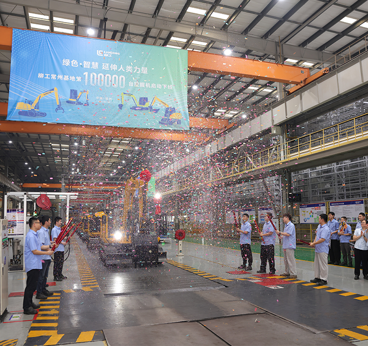 7月15日,柳工東部基地第十萬臺挖掘機成功下線。