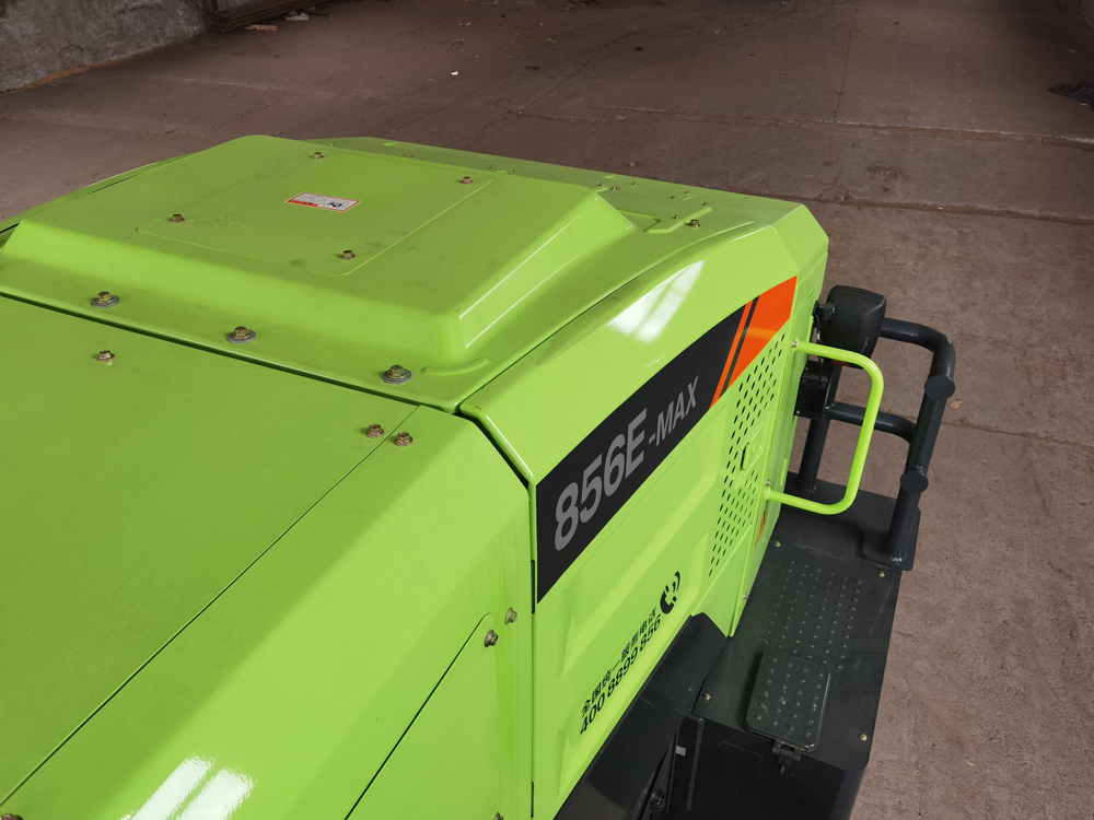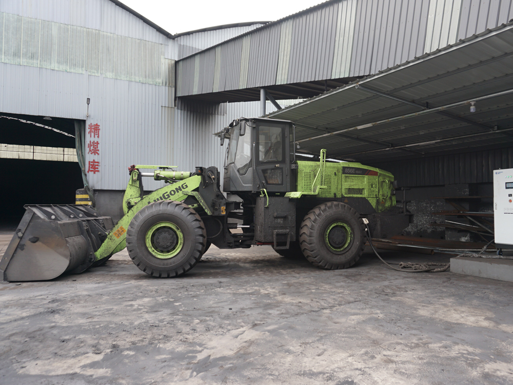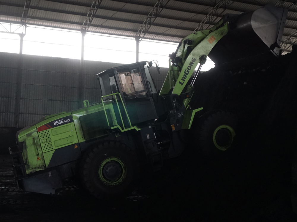 這陣“綠旋風”就是柳工856E-MAX裝載機,它是臨汾周邊洗煤廠的第一臺電動裝載機設備。